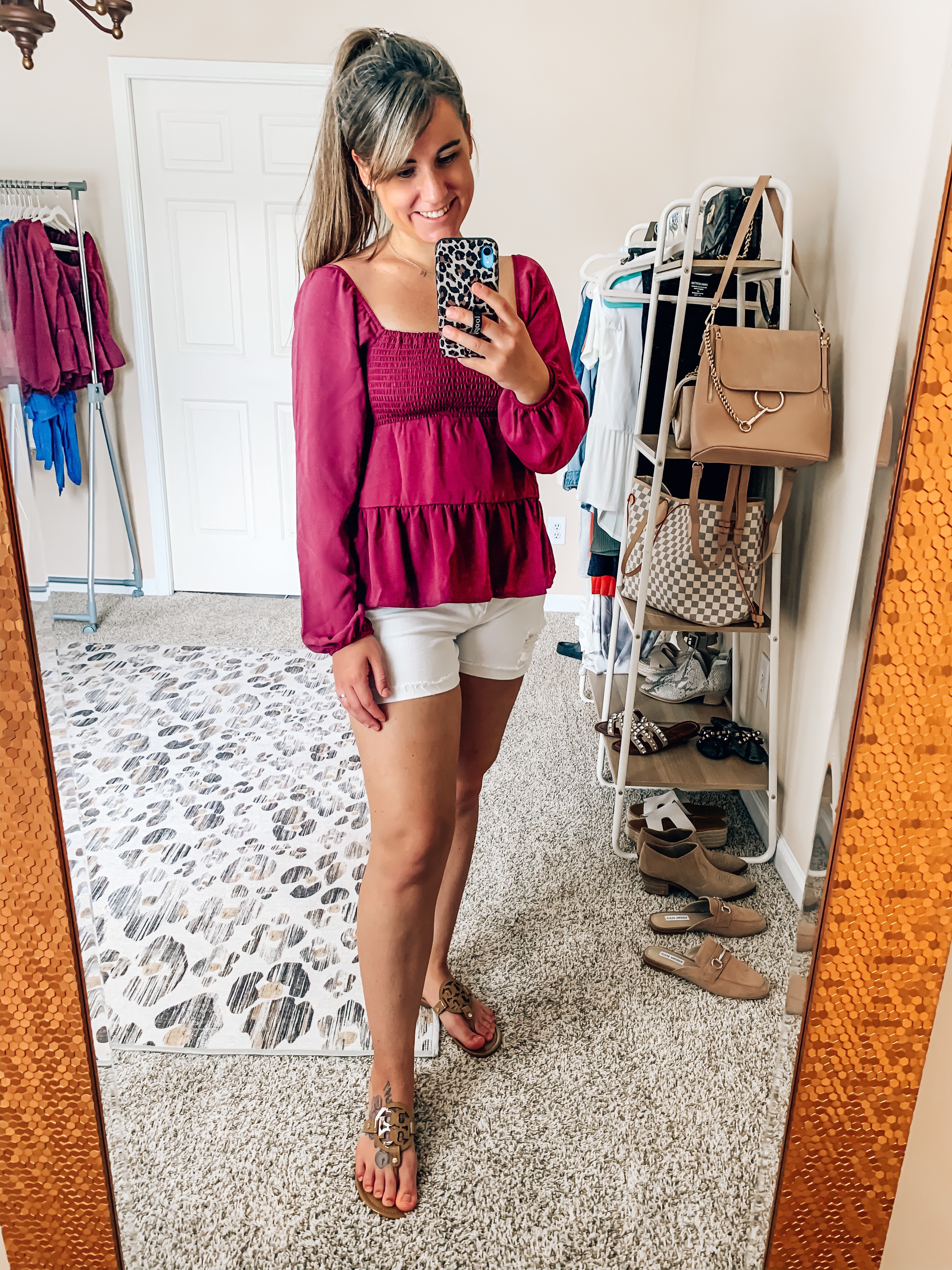 Happy Tuesday! 🤍 slightly obsessed with this new Chasing Chloe Boutique top 😍 it’s so pretty and I love the smocked detail at the top! It’s the perfect fall transition top. So cute with white denim or some dark wash jeans and booties when it gets cooler out. You can get 20% OFF my top using discount code SARAH20 at checkout! Outfit links below