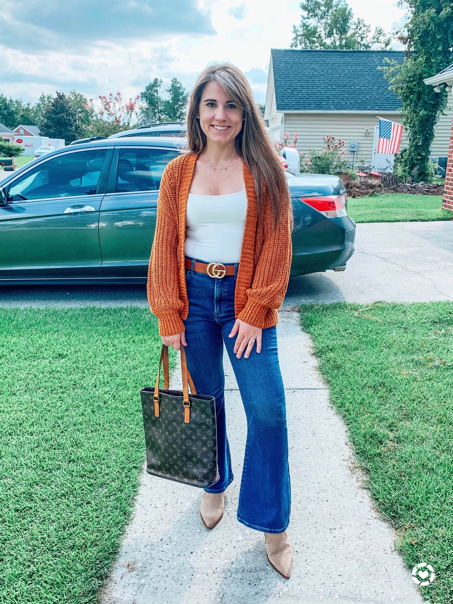Hope everyone had a great long weekend! 🧡 I’m officially in fall mode now 🍁 my new favorite sweater cardigan is on sale right now (plus an extra 15% OFF at checkout!) and comes in a few different color options. These flare jeans are perfection, the fit is SO good and they’re so comfy too!! They are also on major sale! I’m wearing a size small in the cardigan and my true size 8 in the jeans. My Gucci belt dupe is so cute and affordable (comes in a few different color options). Outfit links below!