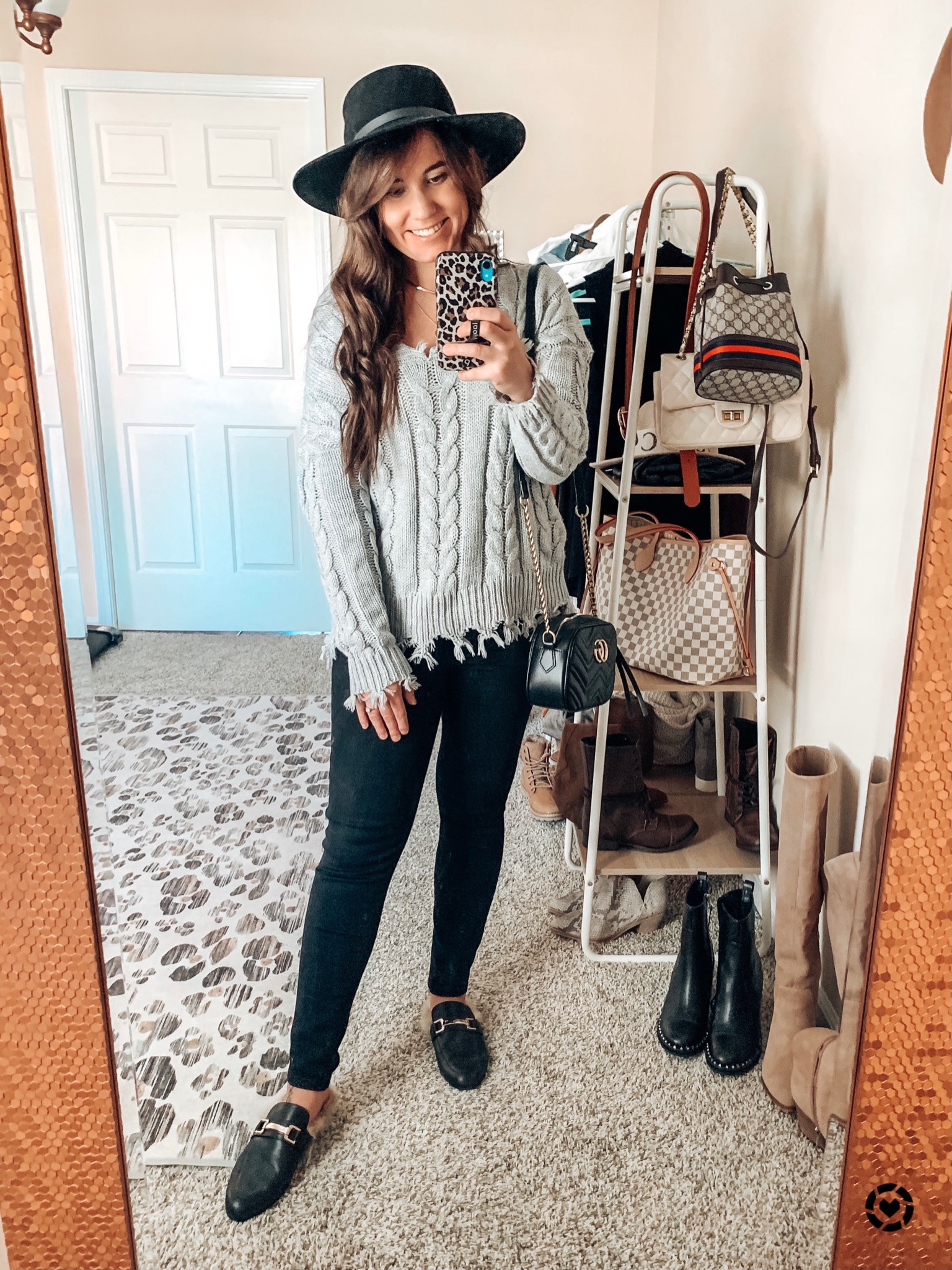 Happy Thursday! I love a good distressed sweater for fall. I can’t link this exact one, but I found a super similar option with great reviews (comes in multiple colors) that I will link! This hat is one of my favorites for fall and only 25 bucks! Outfit linked below
