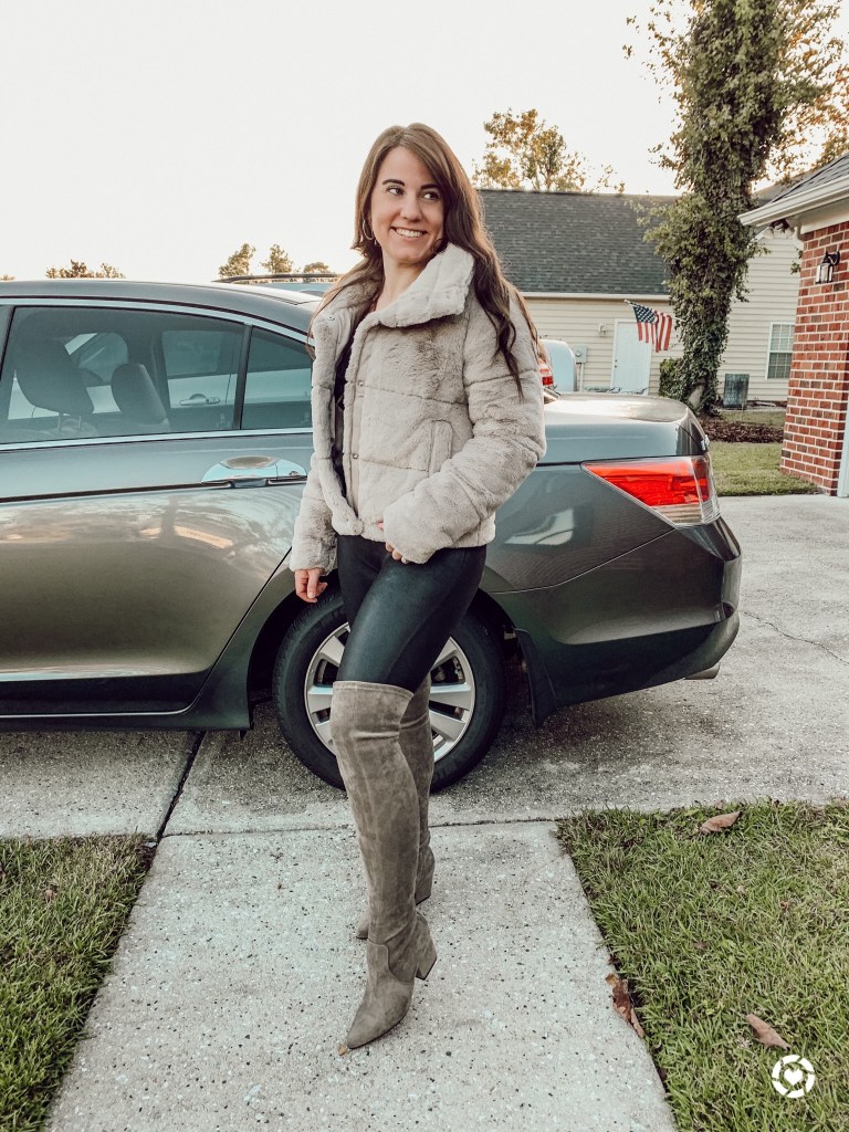 Happy Friday! π in love with this faux fur mini puffer; the color is so pretty and itβs sooo soft & warm! Paired it with my faux leather leggings and favorite over-the-knee boots for a chic look. My coat is currently 15% OFF and comes in a few different color options! And my over the knee boots are 30% OFF using discount code FALL2020 at checkout
