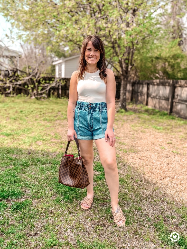 Happy Friday 🤍 My high neck tank bodysuit is on major sale today (40% OFF), it’s such a good staple to have in your wardrobe! And these denim paperbag shorts are going to be one of my go-tos this spring and summer! They’re so cute and great quality.