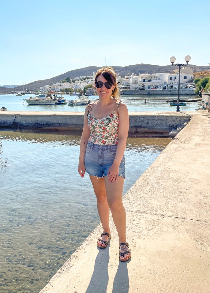 One of my go-to looks while we were on vacation! Can’t beat a cute tank and some jean shorts during the summer 💛 This tie-strap tank would be so cute with some white denim as well! Top has no stretch, so stick with your true size or size up one even!