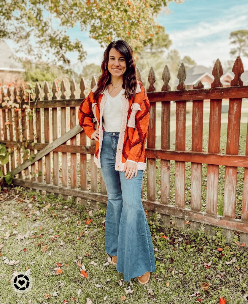 Loving the 70βs vibe of this look π₯° my cozy shacket is 20% OFF today using code PREBF at checkout! Quality is amazing and itβs so soft and perfect for fall. True to size, Iβm wearing the small! Outfit is linked below