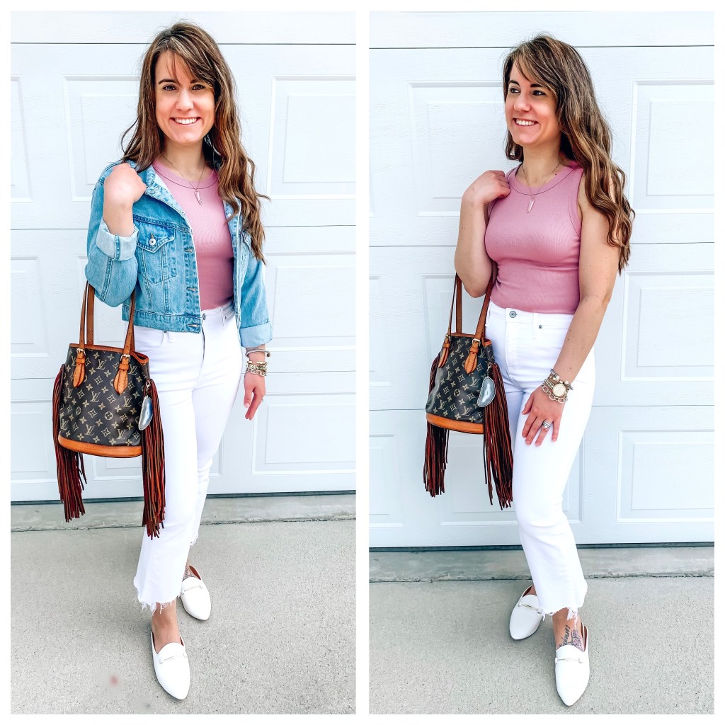 One of my favorite looks Iβve put together for spring π my denim jacket and crewneck tank are both super affordable and such good quality! The denim jacket is more of a βcroppedβ fit, so I sized up to a medium and love how it fits me! Itβs a very comfortable jean jacket and perfect for spring. I got a size medium in the tank as well since itβs more of a tight fitting tank. And these white denim are amazing, the fit is SO good (you can get an extra 30% OFF these at checkout)! My mules are from Chasing Chloe Boutique and you can get 25% OFF at checkout on their website! Links below π