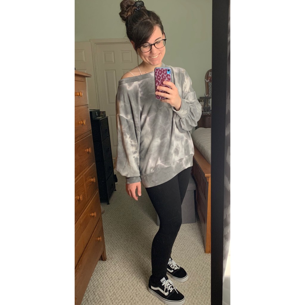 Another cute & comfy on-the-go Monday look! This tie dye top from Chasing Chloe Boutique is one of my favorite tops! Soo cute and comfy and easy to throw on with leggings and some cute sneaks (or booties!) Here is the link: https://chasingchloeboutique.com/products/marbled-tie-dye-top
